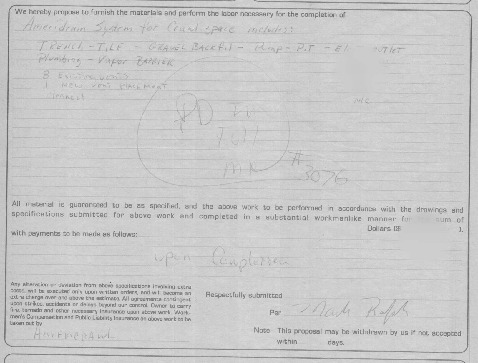 Job completed for Gary A.