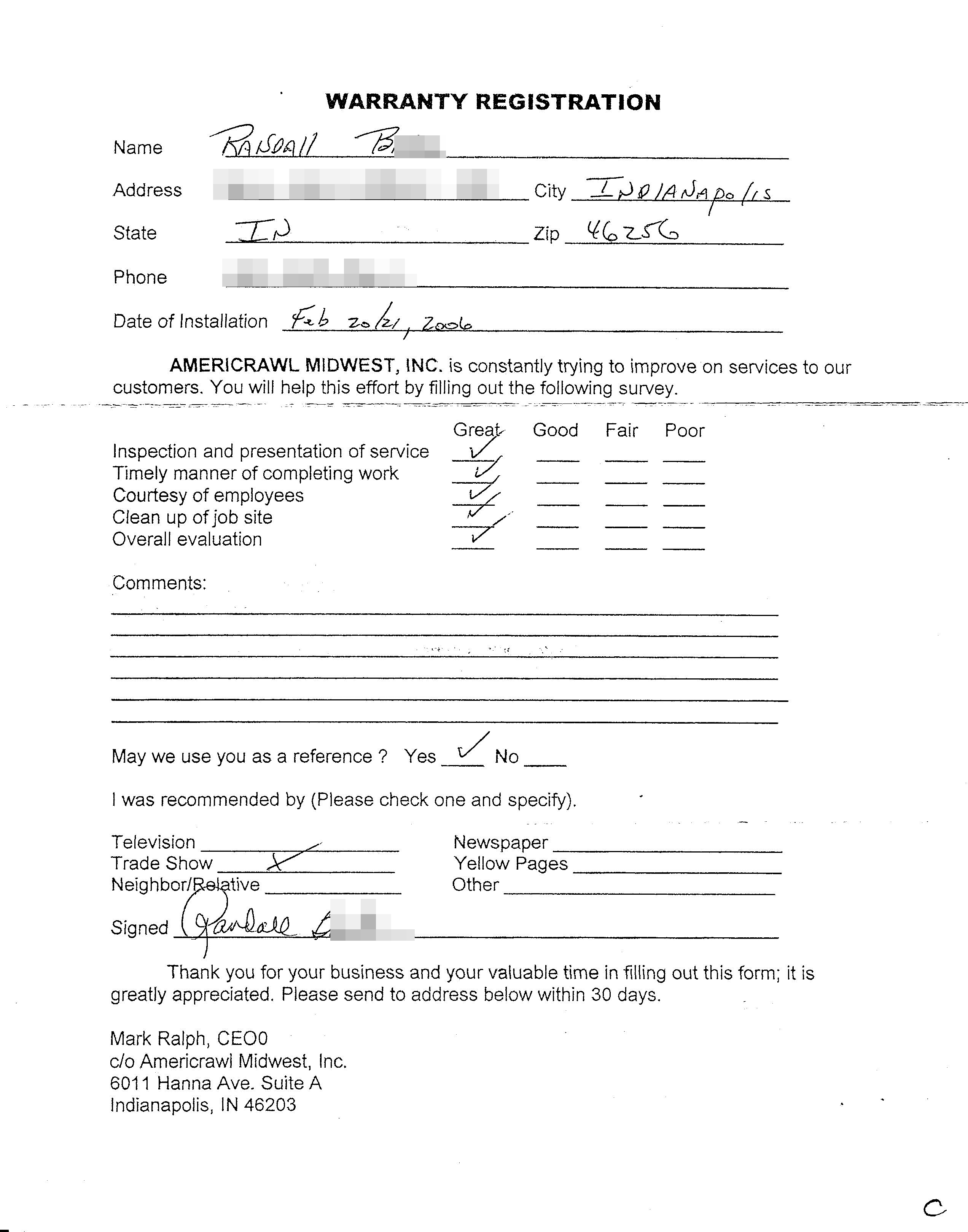 Job completed for Randall B