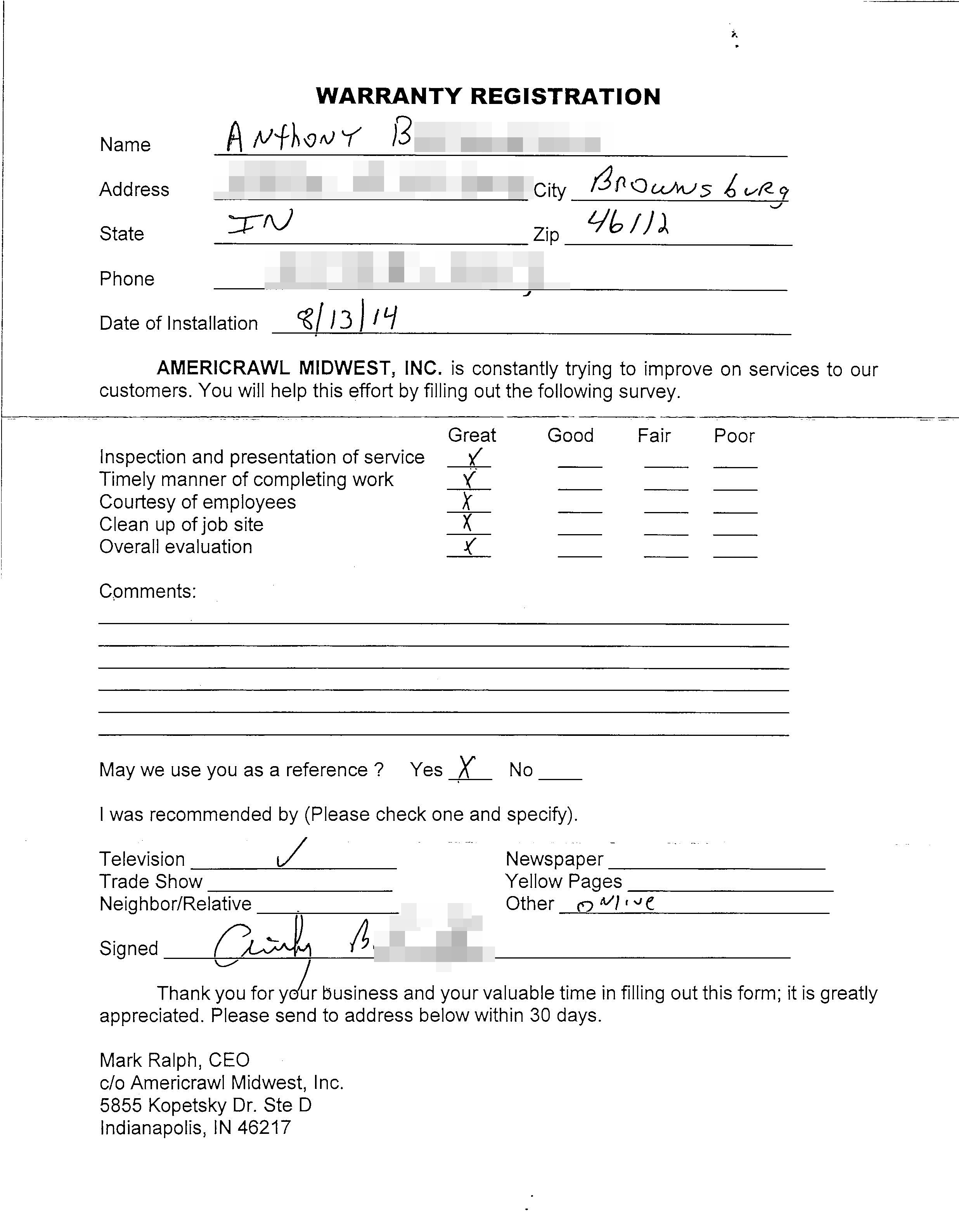 Job completed for Anthony B.