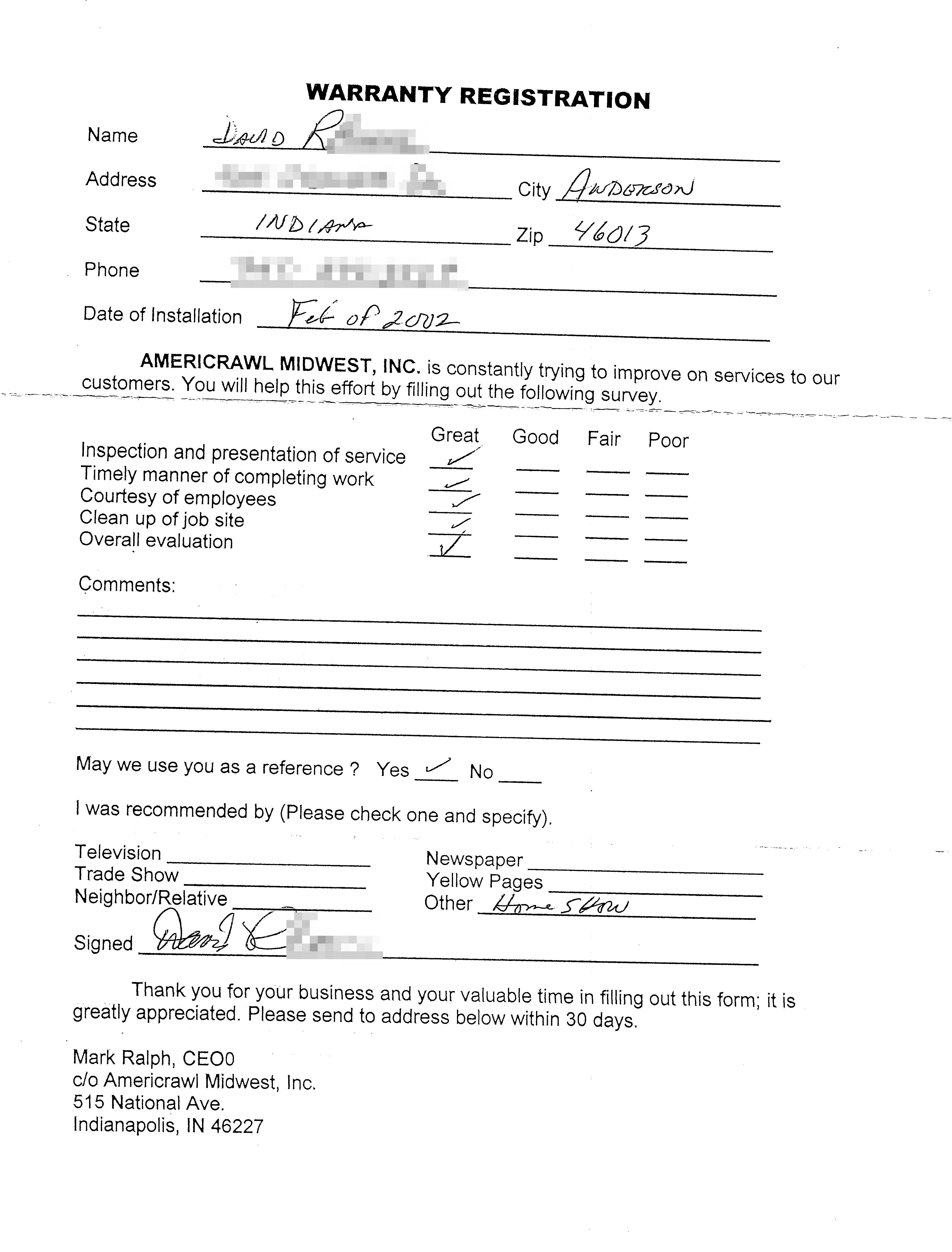 from ground moisture. Americrawl also replaced seven foundation vents, upgraded