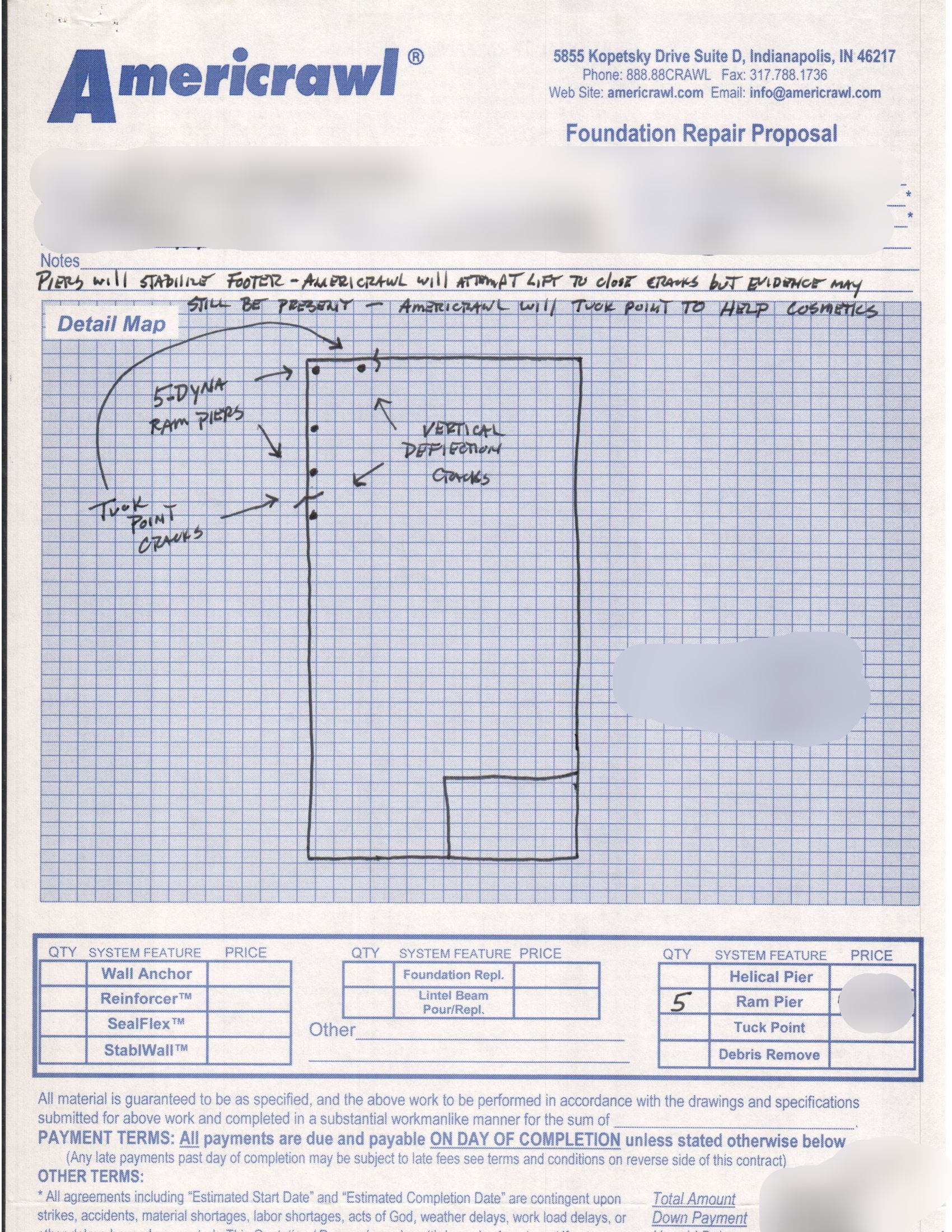 Our crew installed five DynaPier push piers to stabilize a settling corner of the home that has been affected by foundation movement. Each push pier is hydraulically driven deep into the ground until it reaches stable, load-bearing soil or bedrock, ensuring a solid and reliable foundation support point. Once proper depth and resistance are achieved, the piers are securely bracketed to the existing foundation to transfer the structural load away from unstable soils. This system is designed to permanently halt further settlement and, where possible, provide stabilization and correction to the affected corner of the home. The installation of the DynaPier system improves overall foundation performance, enhances structural integrity, and provides a long-term solution to prevent additional movement or damage.