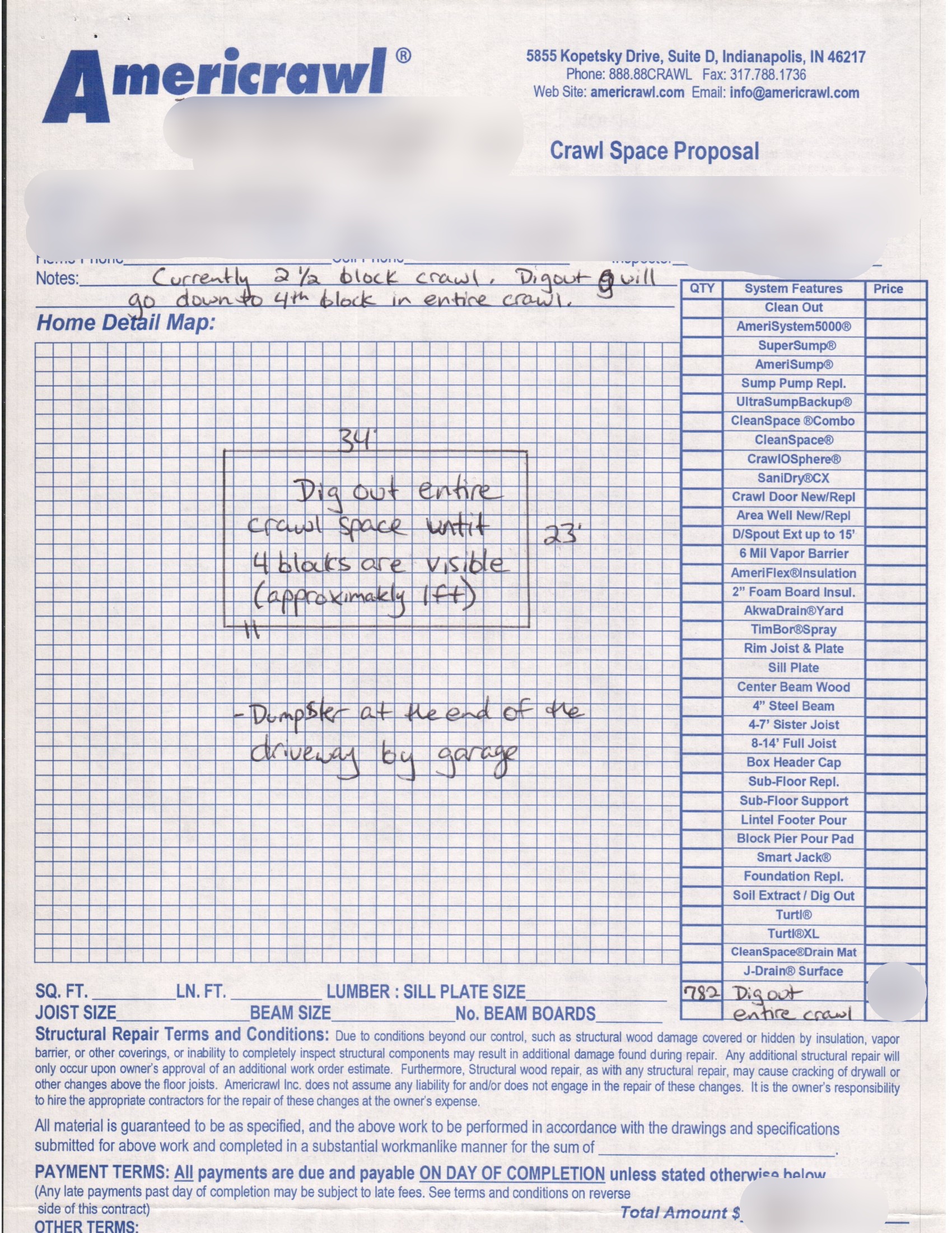 Our expert crew performed a comprehensive crawlspace dig-out covering approximately 782 square feet to improve accessibility and restore proper clearance beneath the home. The crawlspace was excavated to an approximate depth of 24 inches, creating sufficient vertical working space to allow for safe access, future maintenance, and potential system installations. Excess soil was carefully removed and hauled away, with attention given to preserving the integrity of the existing foundation walls, footings, and support elements throughout the excavation process.