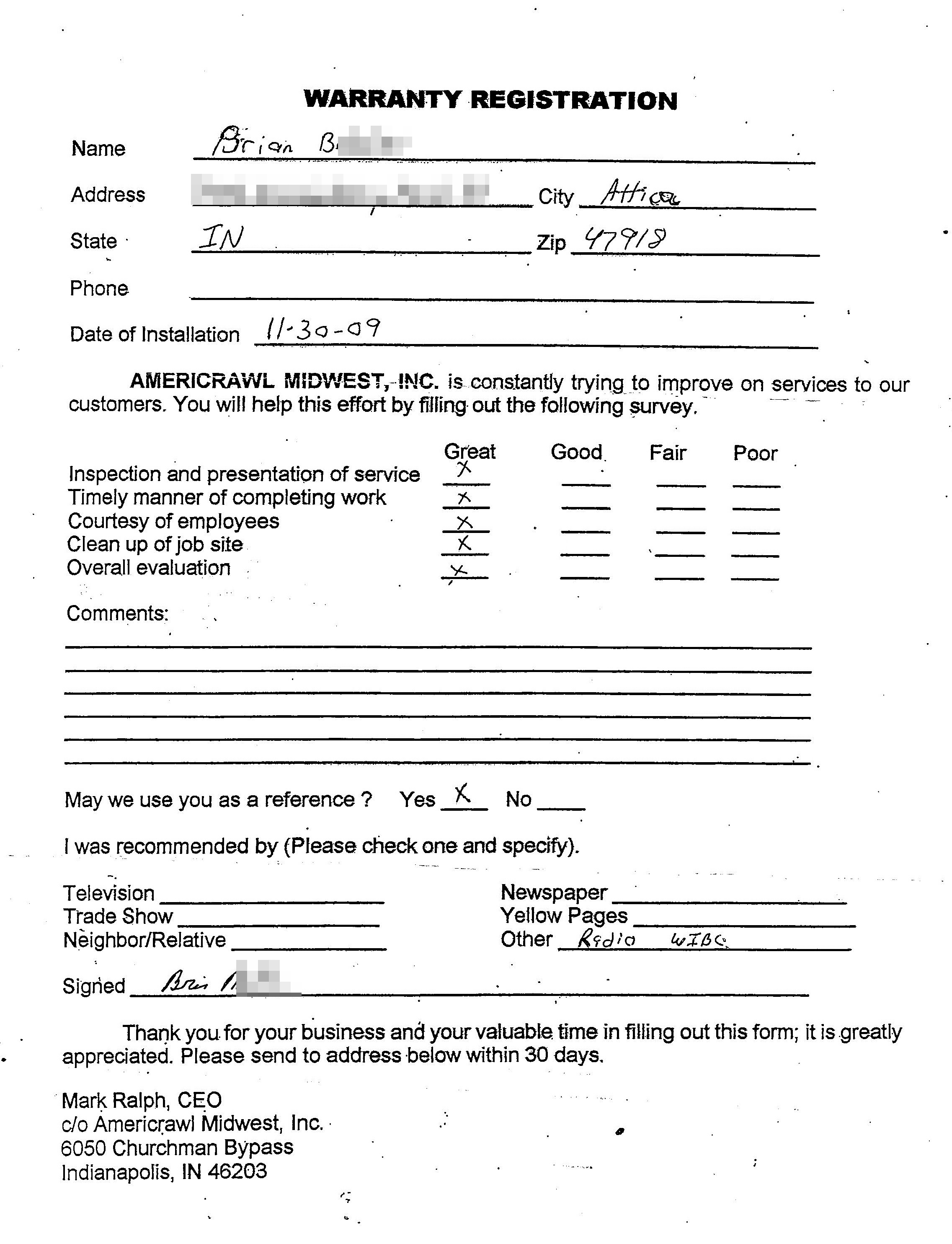 Job completed for Brian B