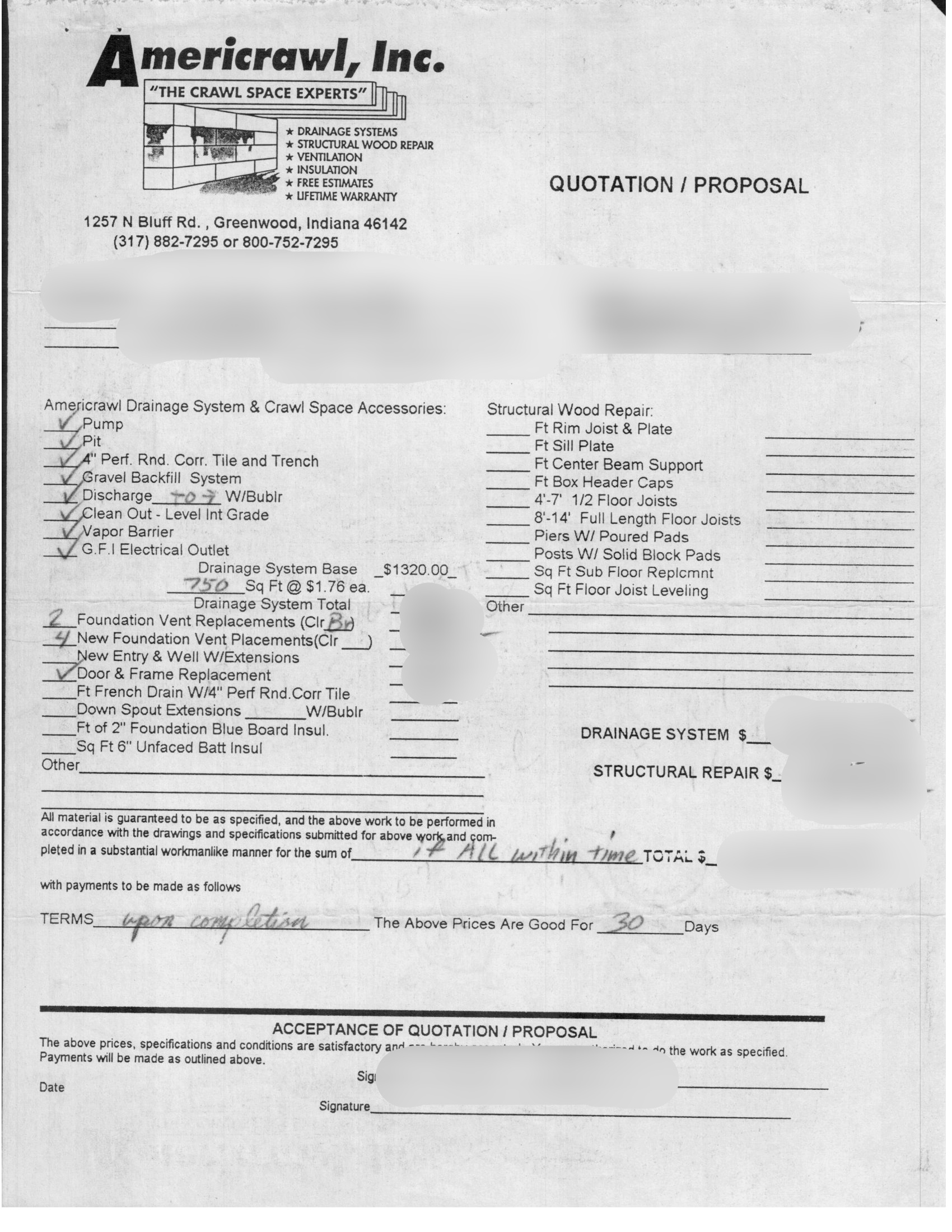Americrawl provided a full crawlspace and foundation repair for a apartment building in Indianapolis, Indiana, addressing both structural and moisture-related issues. The project included the installation of 132 linear feet of AmeriDrain, an advanced interior drainage system that effectively channels water away from the foundation to prevent flooding and damp conditions. To restore the building’s structural integrity, Americrawl’s team replaced 62 feet of rim joist and plate, 100 feet of sill plate, and 120 feet of center wood beam, ensuring strong, stable support for the upper floors. Additionally, 191 full floor joists were repaired and reinforced to enhance durability and load-bearing performance across the property. These improvements not only stabilized the foundation but also promoted healthier air quality and improved energy efficiency for residents. With Americrawl’s proven products and expertise, the apartment building now benefits from a dry, solid, and long-lasting foundation system.