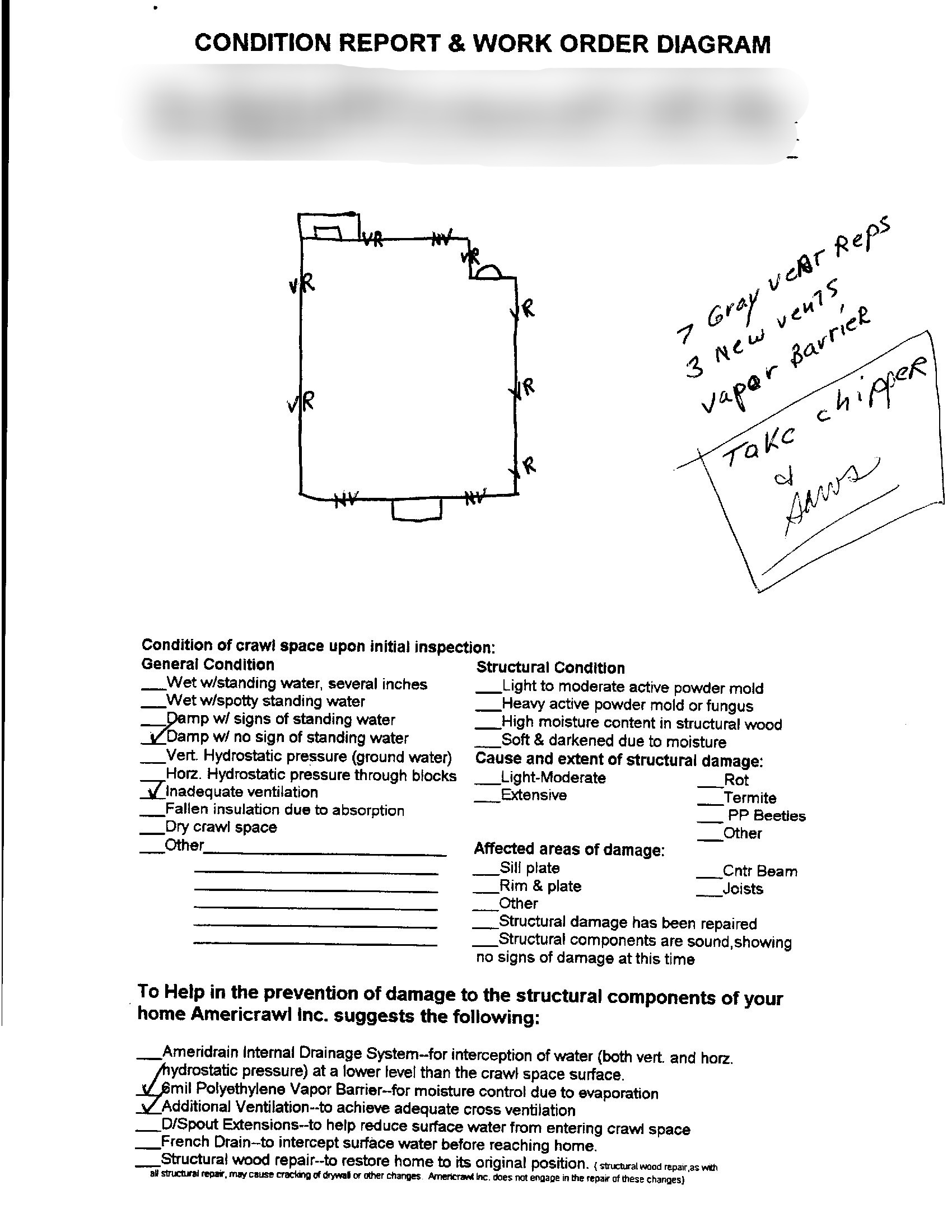 Americrawls crew started with a Crawl Space Preparation: Completed a full crawl space cleanout to remove debris and prepare the area for system installation. Waterproofing & Moisture Control: Installed 1 AmeriSump sump pump station for reliable water removal. Applied 1,635 square feet of CleanSpace® encapsulation system to seal the crawl space and control ground moisture. Installed 1 Sedona dehumidifier to regulate humidity levels and improve air quality. Applied Timbor® spray treatment across exposed wood surfaces to prevent mold growth and protect against wood-destroying organisms. Structural Wood Repairs: Replaced 24 feet of rim joists and plates to restore strength to deteriorated perimeter framing. Replaced 53 feet of sill plate to support the foundation walls and maintain stability. Installed 39 sistered 2x10 floor joists to reinforce existing joists and provide added load-bearing capacity.
